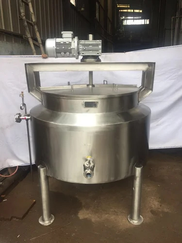 At an industrial scale of manufacturing Ghee Kettle. It is a double walled, hemi-spherical or cylindrical shape jacketed vessel. It has provision for steam heating at a steam pressure of 3.5 kg/cm 2 and condensate outlet, safety valve pressure gauge, agitator cum scraper etc. Since there will be deposit formation on heating surface regular scraping at slow speed is required.